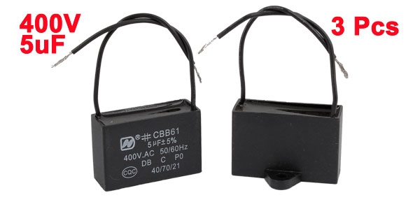3 Pcs AC 400V 5uF Two Wired Ceiling Fan Motor Run Capacitor CBB61