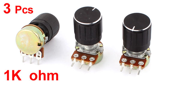 Product Name Potentiometer Resistance Value 1K ohm Adjustment Type Top Adjustment Type Single Linear (Type B) Features Knurled Shaft Shaft Diameter 6mm / 0.2" Shaft Length 13mm / 0.51" Mounting Thread Diameter 7mm / 0.3" Base Size 16 x 7.3mm / 0.63" x 0.29"(D*H) Knob Size 17 x 17mm / 0.67" x 0.67"(D*H) Total Height 29mm / 1.14" Material Metal, Electronic Parts Net Weight 31g Package 3 x Potentiometer - Reviews