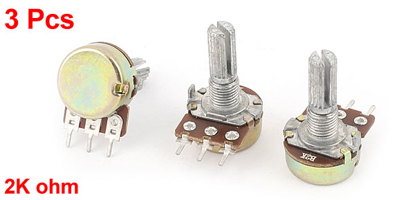 3 Pcs B2K 2K Ohm 13mm Rotating Shaft 3 Terminals Single Linear Potentiometer