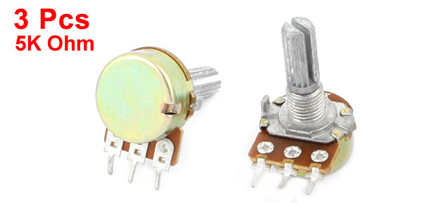 3 Pcs B5K 5K Ohm 13mm Rotating Shaft 3 Terminals Single Linear Potentiometer Pot