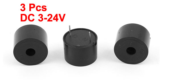 Product Name Piezo Buzzer Sounder Voltage DC 3-24V Type Continuous Sound Total Size(Pin Not Included) 23 x 16mm/ 0.9" x 0.6"(D*H) Pin Distance 15mm/ 0.6" Pin Size 0.8 x 8mm/ 0.03" x 0.32" Materials Plastic, Metal Main Color Balck Total Weight 13g Package Content 3 x Piezo Buzzer Sounder