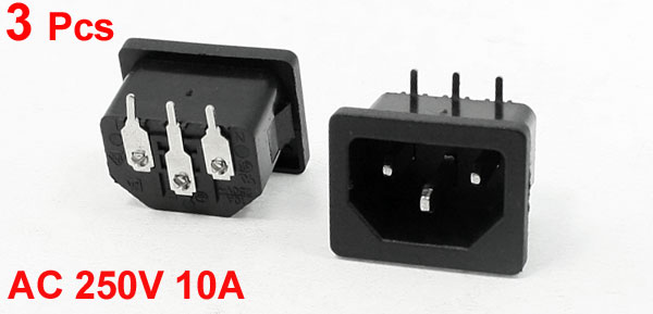 3 Pcs Black 3 Pin Male IEC320 C14 Inlet Plug Power Socket 10A 250VAC