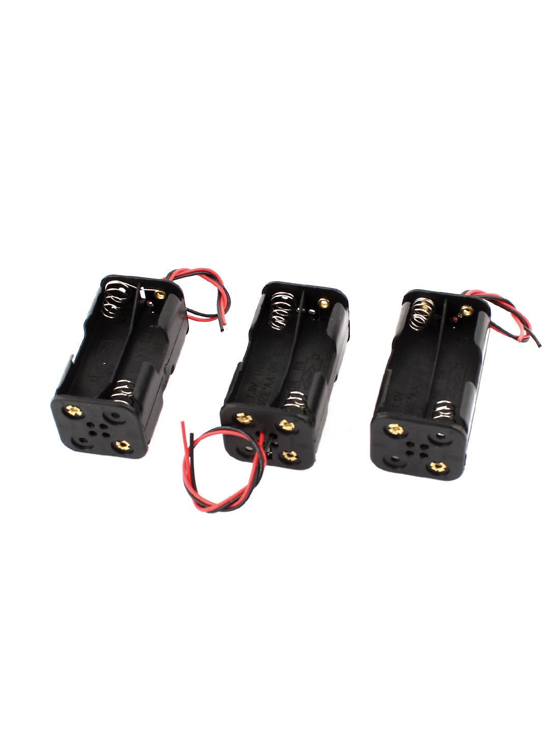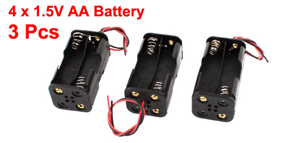3 Pcs Black 4 x 1.5V AA Battery Batteries Holder Storage Case w Leads Wire