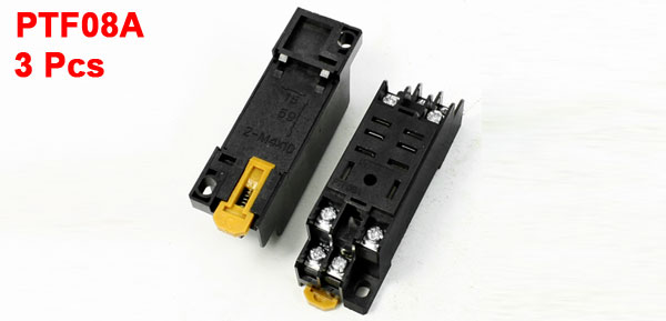 Product Name PYF08A Relay Base Model NO. PTF08A Pin Quantity 8 Total Size (Approx.) 7.5 x 2.2 x 3cm / 3" x 0.9" x 1.2" (L * W *T) Mounting Rail Width 4mm/0.16" Installing Hole Size 5mm/0.2" Installing Hole Spacing 5.6cm/2.2" Material Plastic, Metal Main Color Black Weight 89g Package Content 3 x PTF08A Relay Base - Reviews
