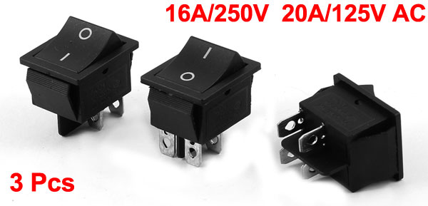 3 PCS DPST 4 Pin 2 Way Black Boat Rocker Switch 16A/250V 20A/125V AC