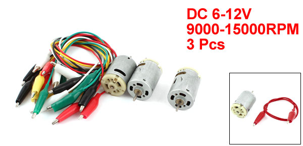 3 Pcs Electric Mini Motor 9000-15000RPM DC 6-12V + 10 Pieces Alligator Clip Wire