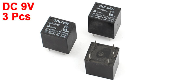 Product Name Power Electromagnetic Relay Model GH-1C-9L Rated Voltage / Current AC 250V/6A 7.5A, AC 125V/15A, DC 28V/15A 16V/15A Coil Voltage DC 9V Size 19 x 15 x 15mm / 0.75" x 0.6" x 0.6"(L*W*H) Color Black Weight 27g Package Content 3 x Power Electromagnetic Relay - Reviews