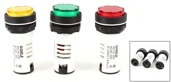 3 Pcs Green Red Yellow LED Electrical Accident Indicator Light Lamp AC/DC24V
