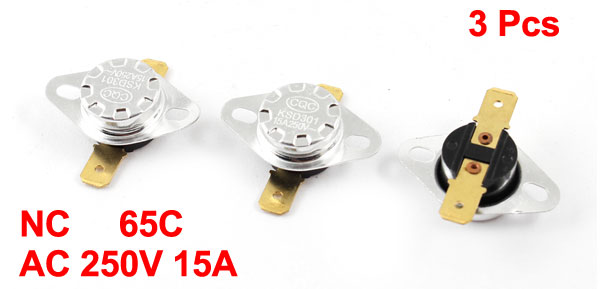 3 Pcs KSD301 65C NC Temperature Controller Switch Thermostat AC 250V 15A
