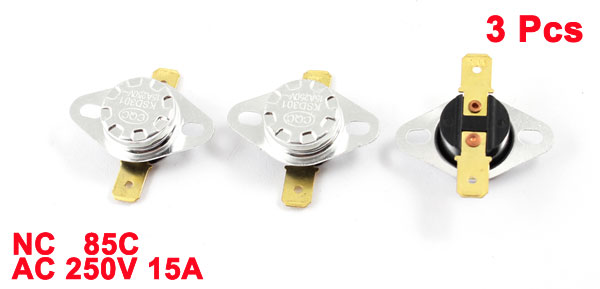 3 Pcs KSD301 85C NC Temperature Controller Switch Thermostat AC 250V 15A
