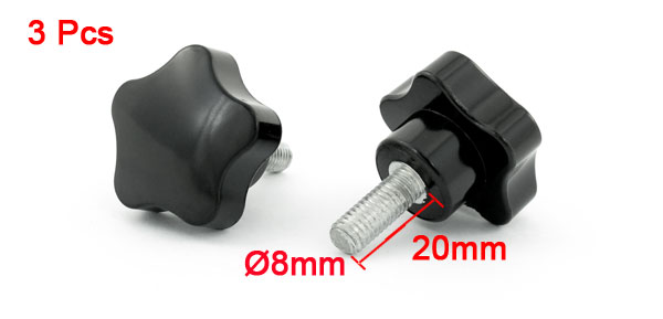 3 Pcs Machine Tool M8 x 20 Male Thread 40mm Dia Bakelite Knobs Handle Black