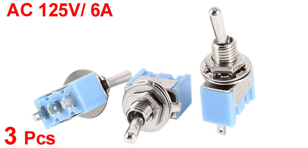 3 Pcs ON/ON 2 Position 3Pin NO NC SPDT Toggle Switch Light Blue AC 125V 6A