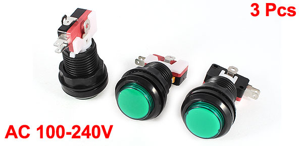 3 Pcs Panel Mount 3Pin SPDT NC Green Push Button Momentary Switch AC 100-240V