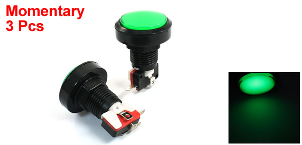 3 Pcs Panel Mount Green Lamp Round Head SPST 4P Momentary Game Button Switch