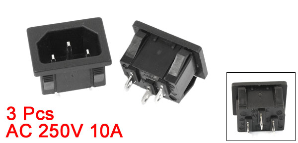 3 Pcs Panel Mounted IEC320 C14 Power Plug Socket Adapter AC 250V 10A