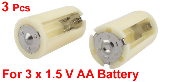 Details3 Pcs Parallel Connection 3 x 1.5V AA Battery Holder Storage Box White  Main Color White, Silver Tone Brand DMiotech Net Weight 63g Country of Manufacture CHINA Package Content 3 x Battery Holder Case Material Plastic, Metal Output 1.5V Dimension 60 x 33mm / 2.4" x 1.3"( H * D) Battery Type 3 x 1.5 V AA Battery