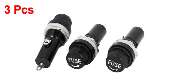 Details3 Pcs PCB Fuse Holder AC 125V 15A 10A 250VAC for 5 x 20mm Fuses  Product Name Fuse Holder Fit for Fuse 5 x 20mm Power AC 125V 15A/10A 250VAC Total Size 50 x 18 mm/2" x 0.7" (L*D) Material Plastic & Metal Color Black Weight 29g Package Content 3 x Fuse Holder