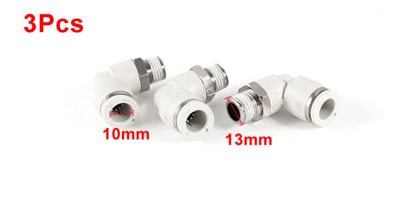 3 Pcs Pneumatic 10mm to 1/4" PT Male Thread L Shaped Quick Fittings White