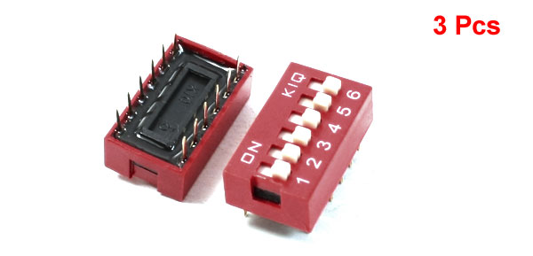 3 Pcs Red Double Row 12 Pin 6 Positions 2.54mm Pitch DIP Switches