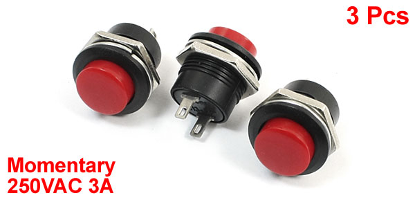 Item Name Push Button Switch Contact Type Momentary SPST Working Voltage 250VAC 3A Button Color Red Mounting Thread Diameter 15mm / 0.6" Button Cap Dia 13mm /0.51" Terminals 2 Pin Overall Size 2.5 x 1.9cm/1" x 0.75"(L*D) Material Plastic, Electronic Parts Weight 21g Package Content 3 Pcs x Push Button Switch - Reviews