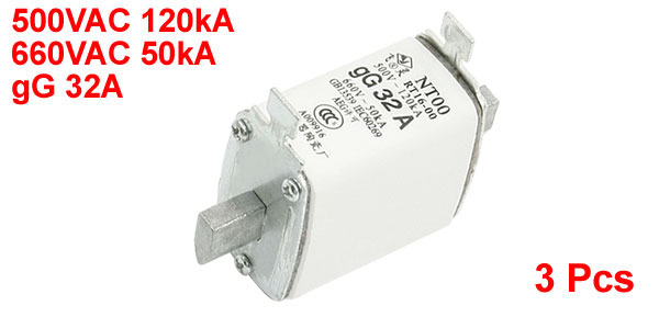 3 Pcs Short Circuit Protection Ceramic Fuse Link 660VAC 50kA gG 32A NT00