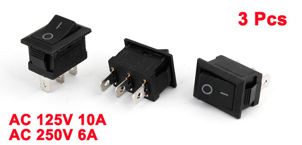 3 Pcs SPDT 3-Terminals Boat Rocker Switches AC 250V 6A 125V 10A