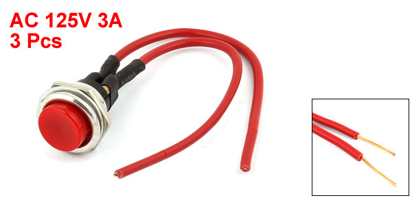 3 Pcs SPDT Momentary Round Car Red Push Button Switch 3A 125VAC
