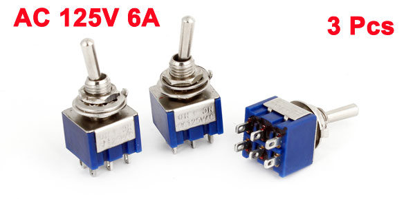 3 Pcs Switching Light Toggle Switch 2 Positions 6Pins DPDT AC 125V 6A