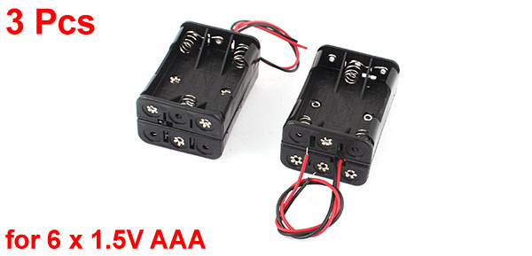 3 Pcs Wire Lead 2-Layer Battery Clip Holder Box Case Black for 6 x 1.5V AAA