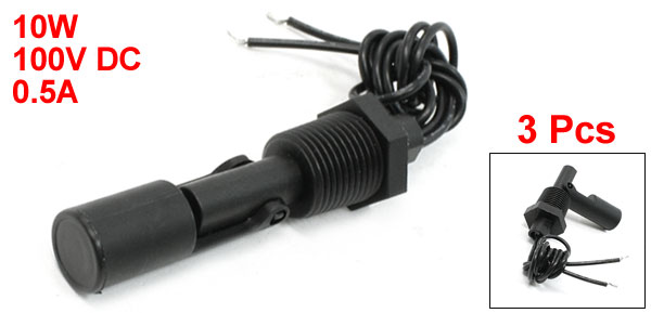 Product Name Floating Switch Model No. ZPC6 Max Contact Rating 10W Max Switching Voltage 100V DC Max Switching Current 0.5A Max Breakdown Voltage 220V DC Max Carry Current 1A Max Contact Resistance 100mΩ Temperature Rating -10 / +85 °C Material Plastic, PP Thread Dia(Approx) 20mm / 0.79" Thread Length 18mm / 0.7" Switch Total Length 90mm / 3.5" Cable Length 34cm / 13.4" Color Black Net Weight 68g Package Content 3 x Floating Switch - Reviews