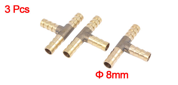 3 Pieces Air Pneumatic Brass T Shape 8mm to 8mm Quick Barb Coupler Connector