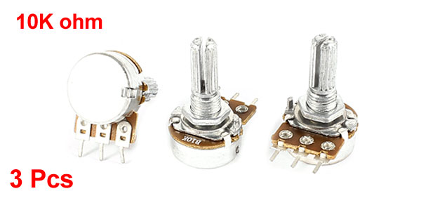 Product Name Potentiometer Resistance Value 10K ohm Adjustment Type Top Adjustment Type Single Linear (Type B) Features Knurled Shaft Shaft Diameter 6mm / 0.23" Shaft Length 13mm / 0.55" Mounting Hole 7mm / 0.28" Base Height 8mm / 0.31" Base Diameter 16mm / 0.62" Total Height 29mm/1.1" Material Metal w Electronic Parts Color As Picture Show Weight 22g Package 3 x Potentiometers - Reviews