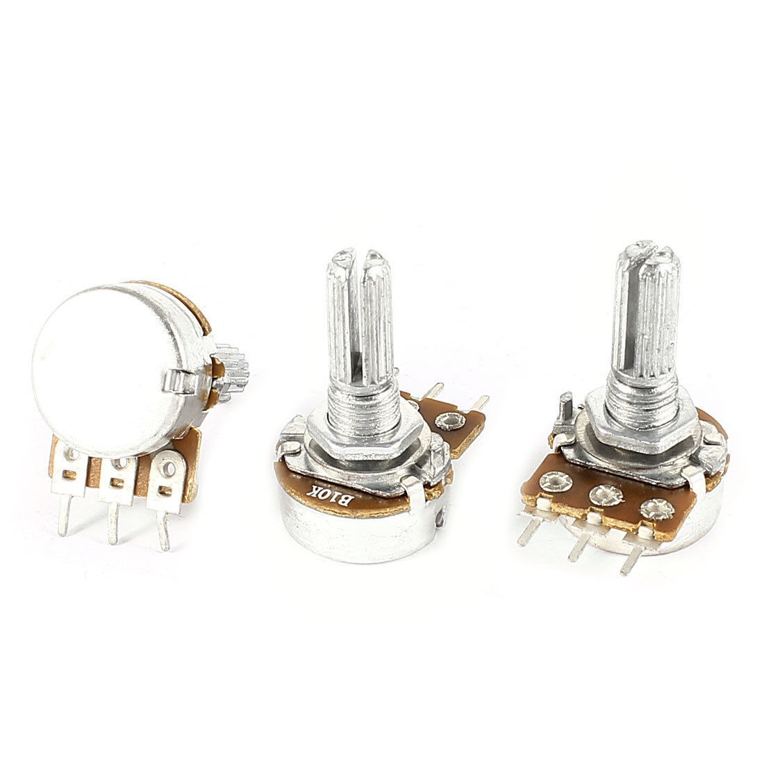 3 Pieces B10K 10K Ohm 3 Pins Single Linear Rotary Taper Potentiometer AC 220V 6A