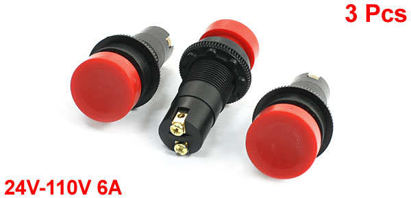 3 Pieces Machine Tools Red Round Head Momentary Push Button Switch 24V-110V 6A
