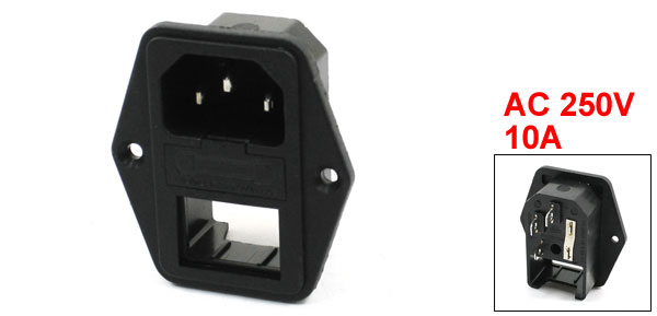 3-Pin IEC320 C14 Inlet Male Plug Power Socket Black 10A 250VAC + Fuse Holder