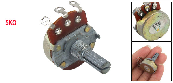 Product Name Potentiometer Type Pots Potentiometer Resistance Value 5kΩ Threaded Part Diameter 0.8cm/ 0.3" Shaft Size 0.6 x 1.4cm/ 0.24" x 0.55" (D*L) Size 2.4 x 3.1 x 3.2cm/ 0.9" x 1.2" x 1.3" (D*W*H) Weight 12.6g Package 1 x Potentiometer - Reviews
