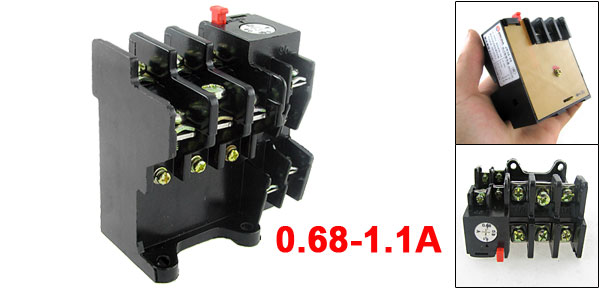 3 Pole 1 NO 1 NC AC Thermal Overload Relay 0.68-1.1A 20A 660V 10A/380V