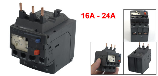 3 Pole AC 16A - 24A Black Electric Thermal Overload Relay 1 NO 1 NC