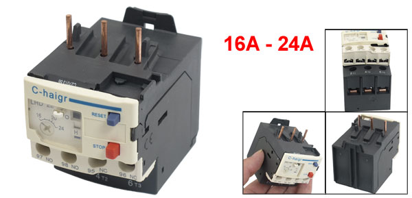 3 Pole AC 16A - 24A Electric Thermal Overload Relay 1 NO 1 NC Oeson
