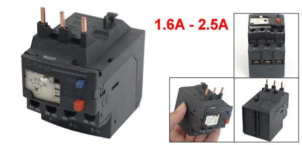 3 Pole AC 1.6A - 2.5A Black Electric Thermal Overload Relay 1 NO 1 NC