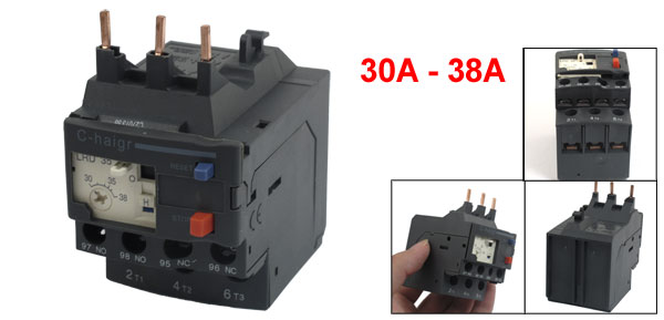 3 Pole AC 30A - 38A Black Electric Thermal Overload Relay 1 NO 1 NC