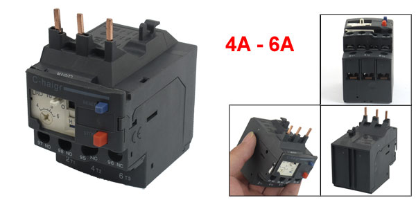 3 Pole AC 4A - 6A Black Electric Thermal Overload Relay 1 NO 1 NC