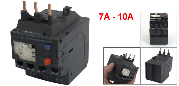 3 Pole AC 7A - 10A Black Electric Thermal Overload Relay 1 NO 1 NC