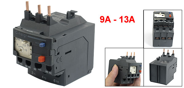 3 Pole AC 9A - 13A Black Electric Thermal Overload Relay 1 NO 1 NC