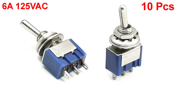 3-Position SPST Self-Locking Mini Toggle Switch 6A 125VAC 3A 250VAC 10PCS