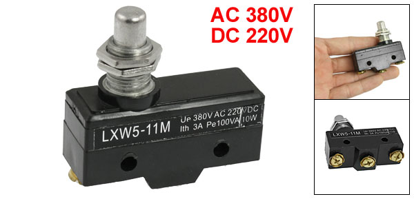 Product Name Micro Switch Model No. LXW5-11M Contact Type 1NO, 1NC, 1 Com Mounting Type Panel Mount Termination Style Screw Terminal Actuator Type Parallel Plunger Rating Ue: AC 380V, DC 220V