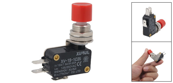 DS-438 Actuator Type Push Button Rating Ue: AC125/250V, Ie: 15A/7.5A, Ith: 20A Contact configuration SPDT Actuator Height 2.78cm /1.09" Switch Body Size 2.98 x 1.13 x 1.58cm / 0.39 x 0.44 x 0.62"(L*W*H) Fixing Holes Dia ~0.22cm / 0.09" Dia of Holes in Terminals 0.13cm / 0.05" Thread Dia 1.17cm / 0.46" Terminal Blade Width 0.47cm / 0.19" Material Plastic & Metal Color Red, Black & Silver Tone Net Weight 21g Package Content 1 x Micro Switch - Reviews