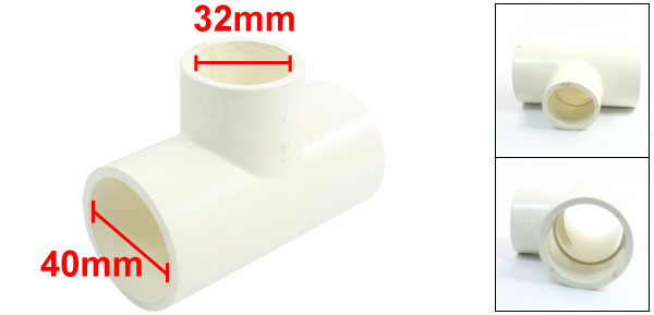 Product Name Pipe Connector Type Tee Pressure 1.6Mpa Adapter Inner Dia 40 x 32mm / 1.6" x 1.3" Overall Size (Approx.) 92 x 70 x 48mm / 3.6" x 2.8" x 1.9"(L*W*T) Material PVC-U Color White Weight 87g Package Content 1 x Pipe Connectors - Reviews