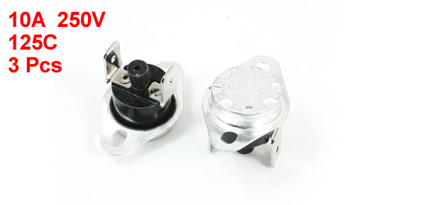Product Name Manual Reset Thermostat Model.No KSD 301 Action Type (NC)Normal Closed Action Temperature 125 Degree Celsius Rating 10A 250V Size(Each) 3.2 x 2.2cm/ 1.26" x 0.87"(L*T) Material Metal, Plastic Color Black, Silver Tone Net Weight 15g Package Content 3 x Manual Reset Thermostat - Reviews