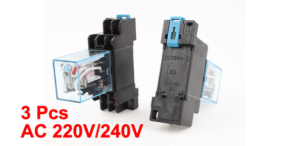 3 x AC 220V/240V Coil 8Pin DPDT 35mm DIN Rail Mount General Power Relay + Socket